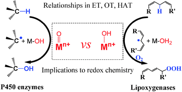 The relationships of active metal oxo and hydroxo moieties have been summarized with their implications for biological and chemical oxidations.